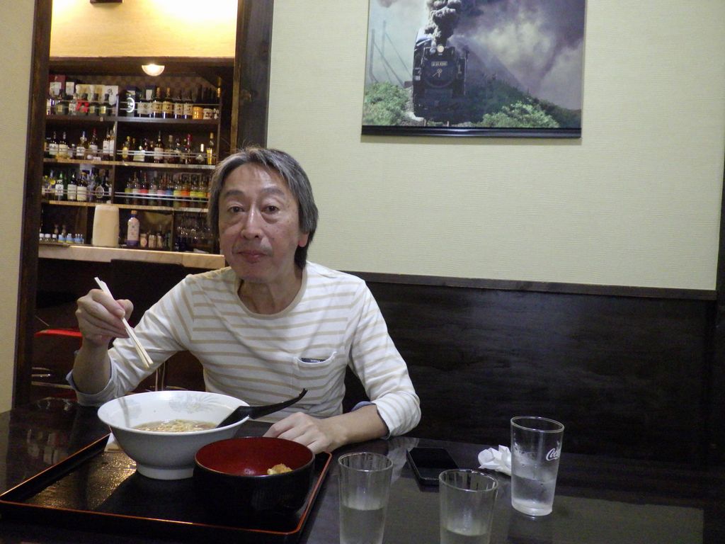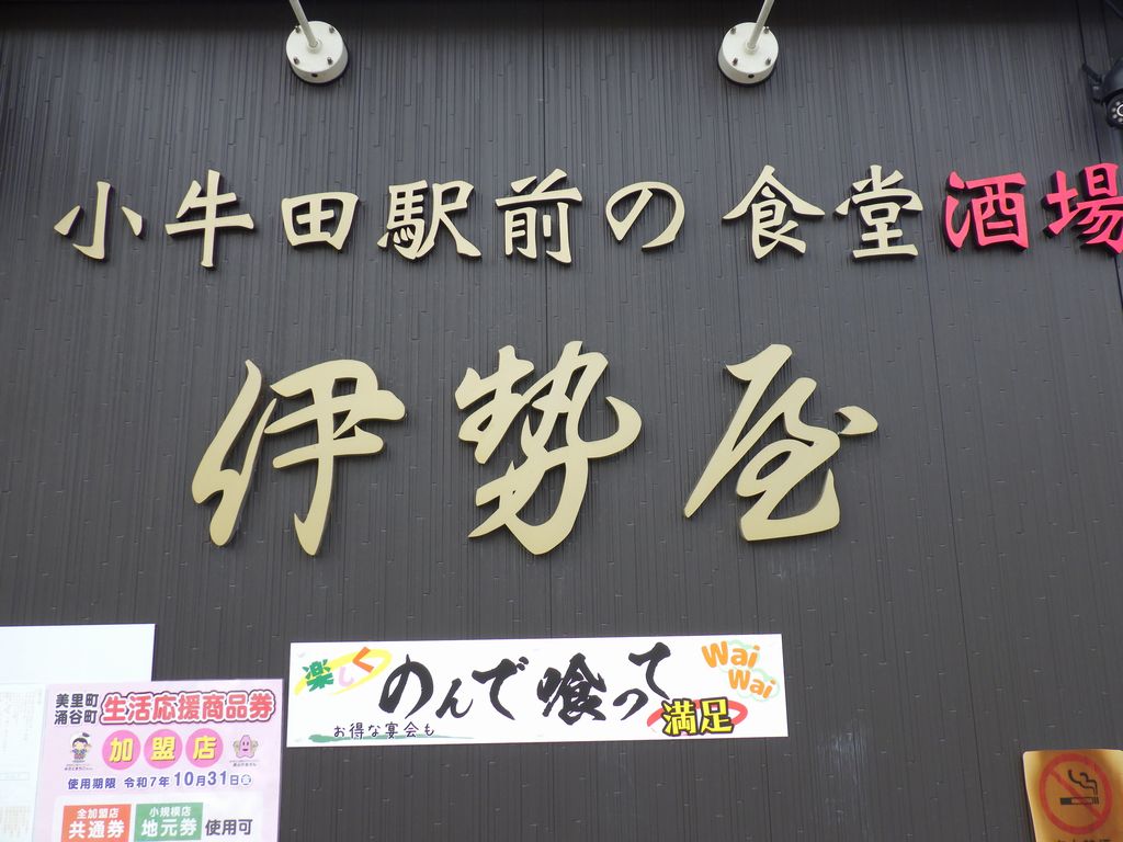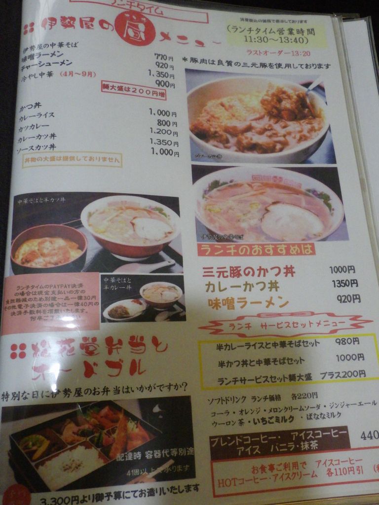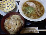 昼食-半かつ丼+中華そばセット、稲章純米吟醸、黄金澤原酒、一ノ蔵祥雲金龍 (伊勢屋)
