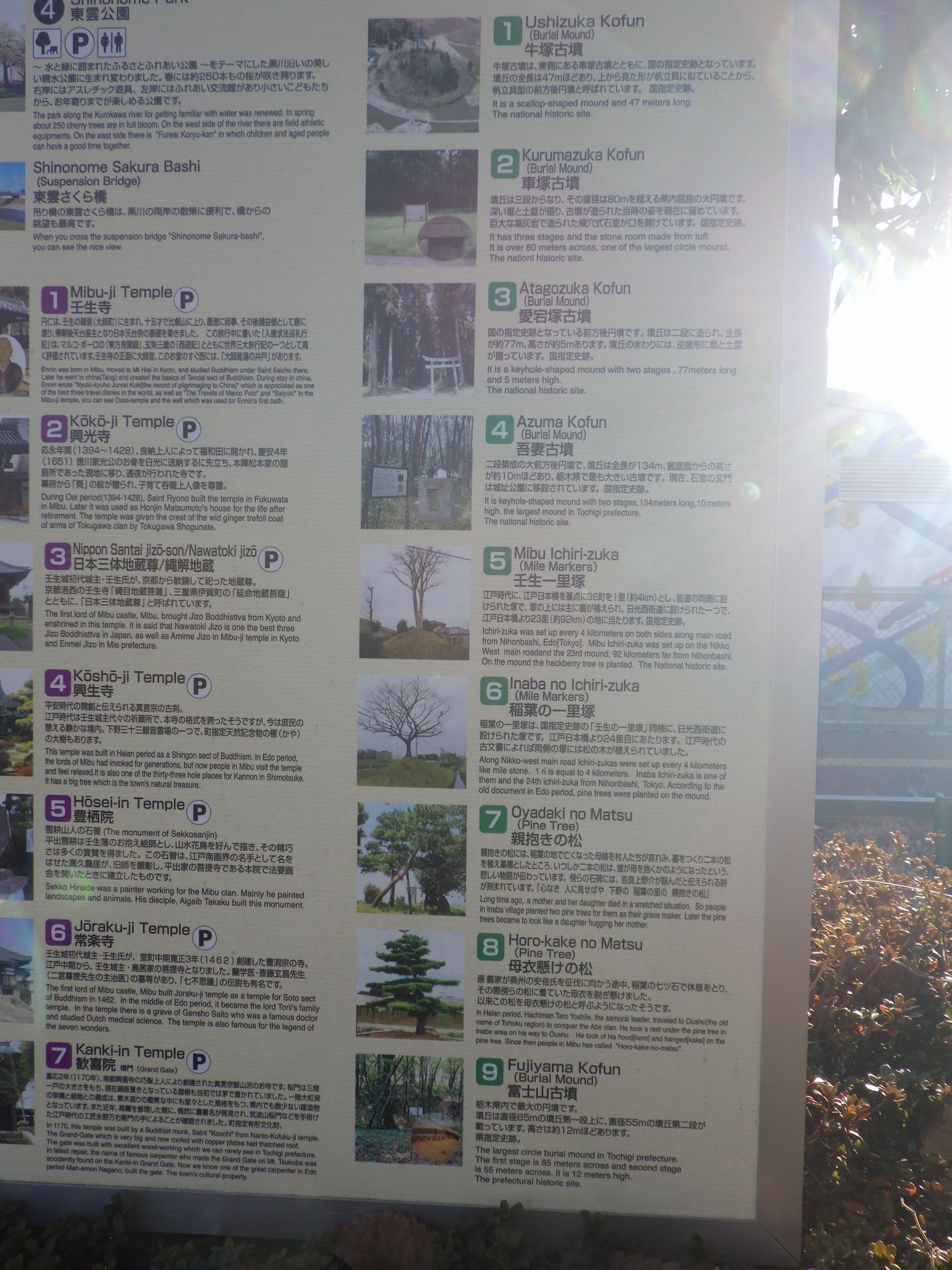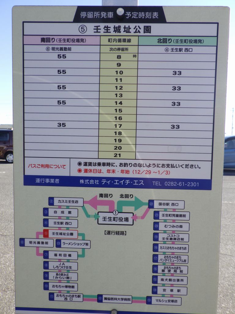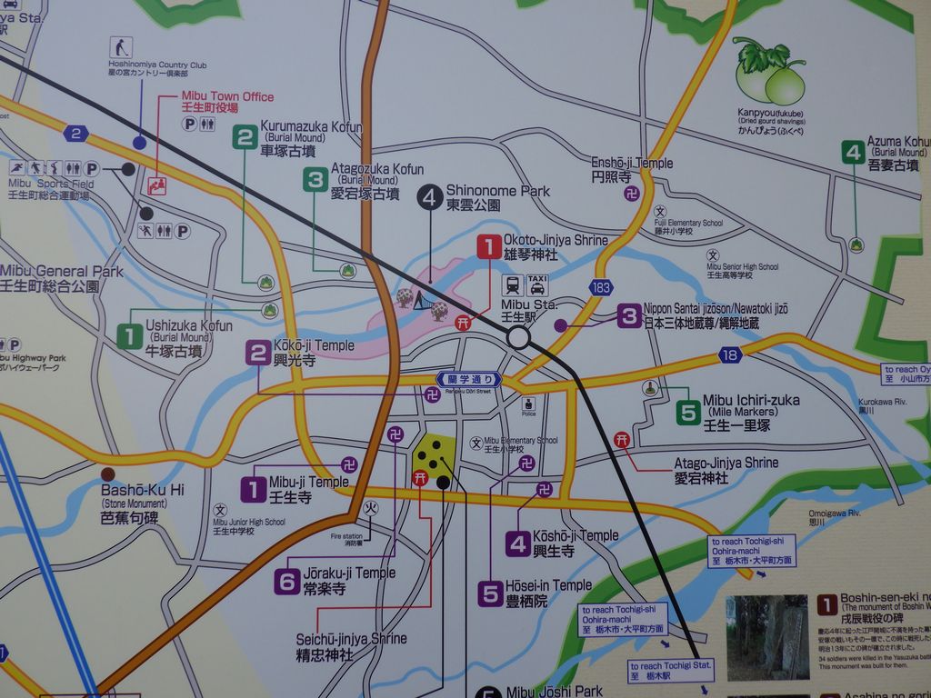 1東横INNホスピタルイン獨協医科大学 → 2おもちゃのまち駅 → 3(東武宇都宮線) → 4壬生駅 → 5雄琴神社 → 6(道すがらのしののめさくらばしなど) → 7「らーめん処 鈴乃屋」(外でタバコを吸っただけ) → 8壬生町立歴史民俗資料館 → 9精忠神社 → 10壬生町城址公園 → (壬生観光タクシー) → 11天平の丘公園 → 12しもつけ風土記の丘資料館 → 13天平の丘公園 (公園内にある栃木県埋蔵文化財センターに行ったけど開いてなかった。残念!!) → (国分寺タクシー) → 14小金井駅 → 15そば処「大栗屋」 → 16小金井一里塚 → 17小金井駅 → (宇都宮線) → 18宇都宮駅 → 19(烏山線) → 20烏山駅 → 21島崎酒造 → 22慈願寺 → 23クラフト館・和紙会館 (外から見ただけ) → 24江戸前「美喜寿司」 → 25「ローソン 那須烏山旭一丁目東店」 → 26(道すがらの烏山大橋など) → 27竹の荘