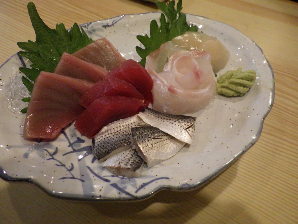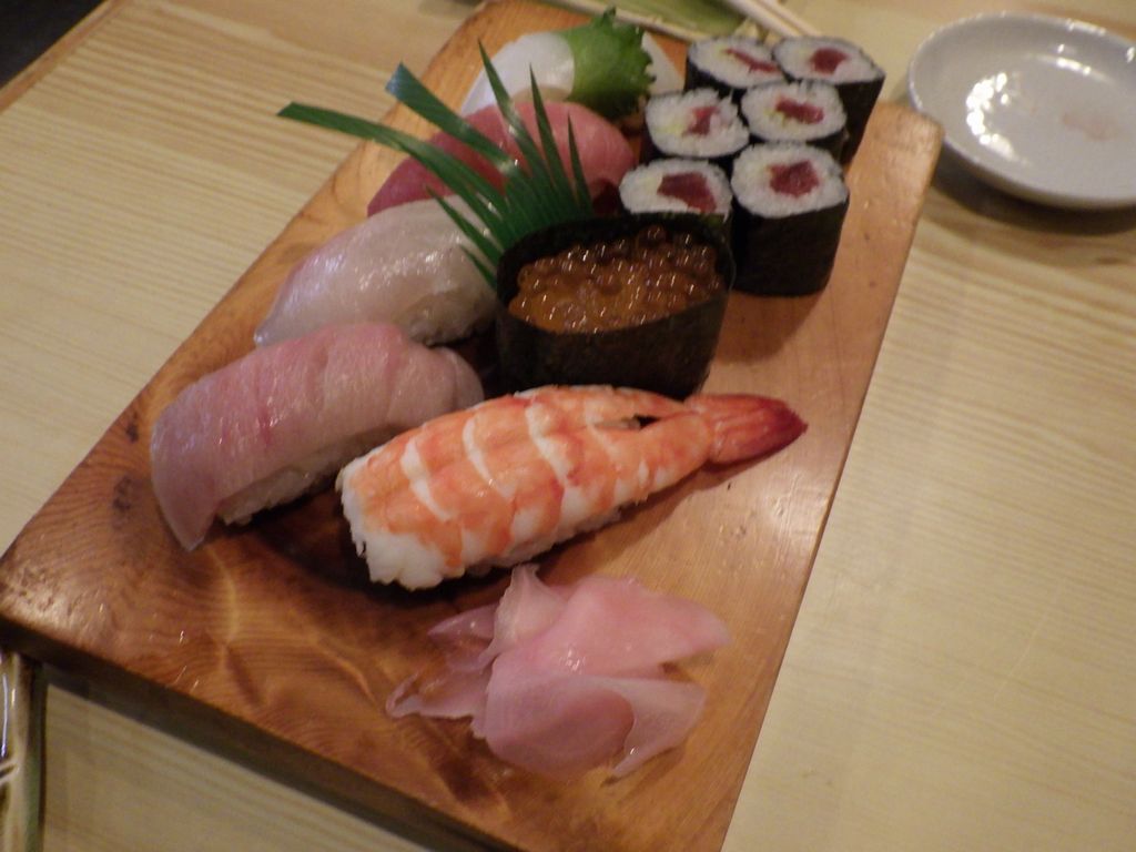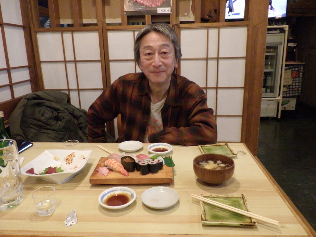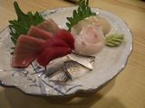 夕食−お刺身盛合せ、鹿刺し、にぎり竹、栃木の地酒飲み比べ純米酒セット三種 (東力士、惣譽、天鷹)、烏山の地ビールBrew Colony、天鷹 (美喜寿司)
