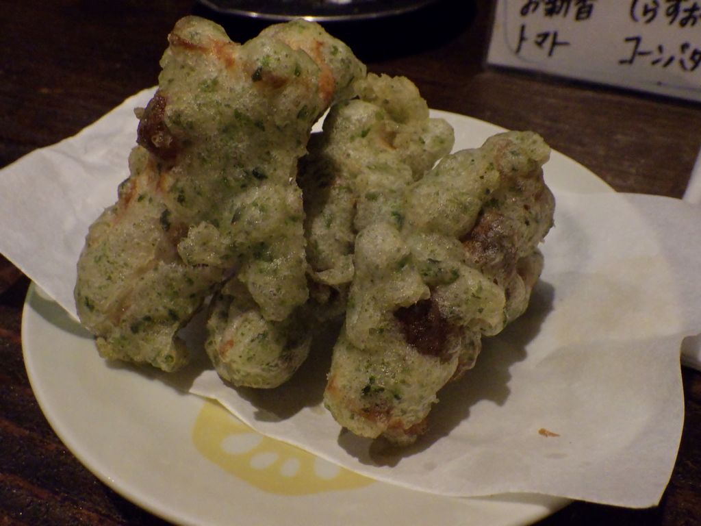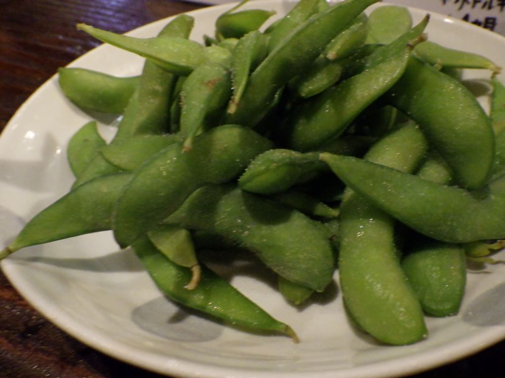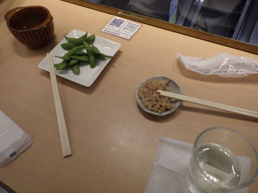 おやつ−枝豆、干し貝柱と干しエビ山椒炒め、キブナドン、澤姫、天鷹 (九尾) (SAKE_TO_SAKE)