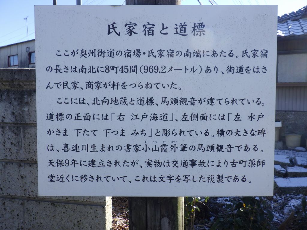 1宇都宮東武ホテルグランデ → 2(道すがらの釜川、二荒山神社、田川沿い、スタミナ健太など) → 3宇都宮駅 (「BECK'S COFFEE SHOP 宇都宮」) → (宇都宮線) → 4氏家駅 → 5(道すがらの雪、山) → 6さくら市ミュージアム−荒井寛方記念館− → 7勝山城跡 (不動明王坐像の鋳型) → 8将軍地蔵 (別名そうめん地蔵、堂原のいちょう) → 9(道すがらの雪山) → 10お伊勢の森 → 11(奥州街道道すがら) → 12氏家宿の道標・馬頭観音 (氏家宿南端) → 13(道すがらのカエル像) → 14河原石塔婆群 → 15(道すがらの五行川沿い旧家) → 16千手観音堂 (本尊は見られず) → 17田島食堂 (外から見ただけ) → 18西導寺 → 19手打生蕎麦「三好家」 → 20「eプラザ参番館」 → 21光明寺 (不動明王坐像) → 22(道すがらの会津中街道) → 23仙禽酒造 → 24今宮神社 → 25(道すがら) → 26八坂神社 → さくらテラス (駅前情報館) → 27滝澤酒店 → 28氏家駅 → (宇都宮線) → 29宇都宮駅 → (宇都宮線) → 30栗橋駅 (久喜駅で東武伊勢崎線に乗り換えようと思っていたらJRが遅れていたため急遽下車) → 31(東武日光線) → 錦糸町駅 → 32お食事処「はな笠」 → 32旧西友稲毛店跡
