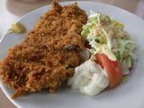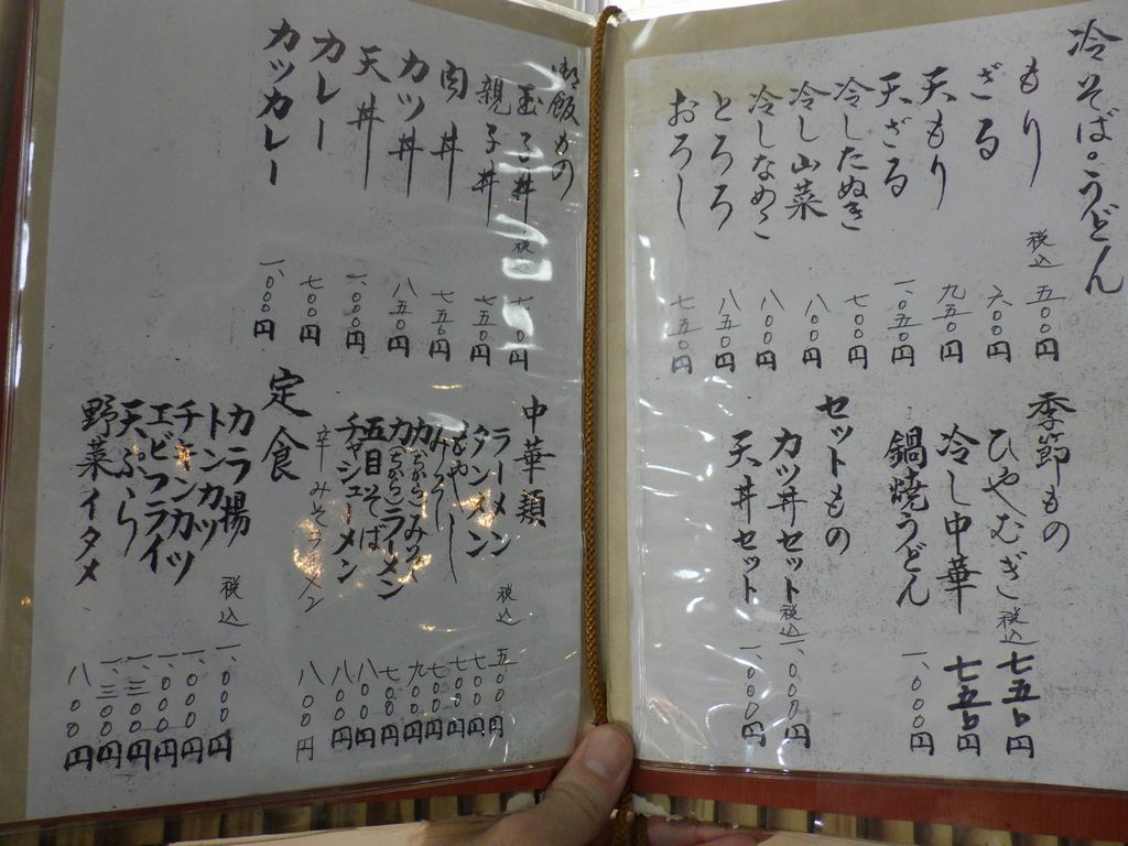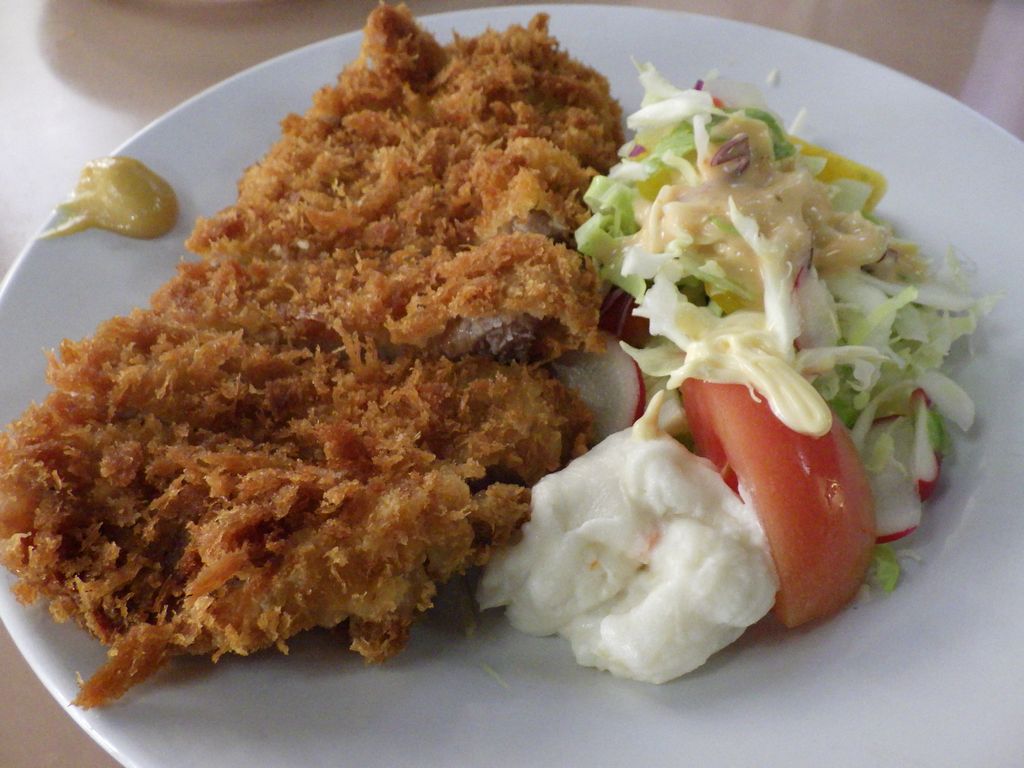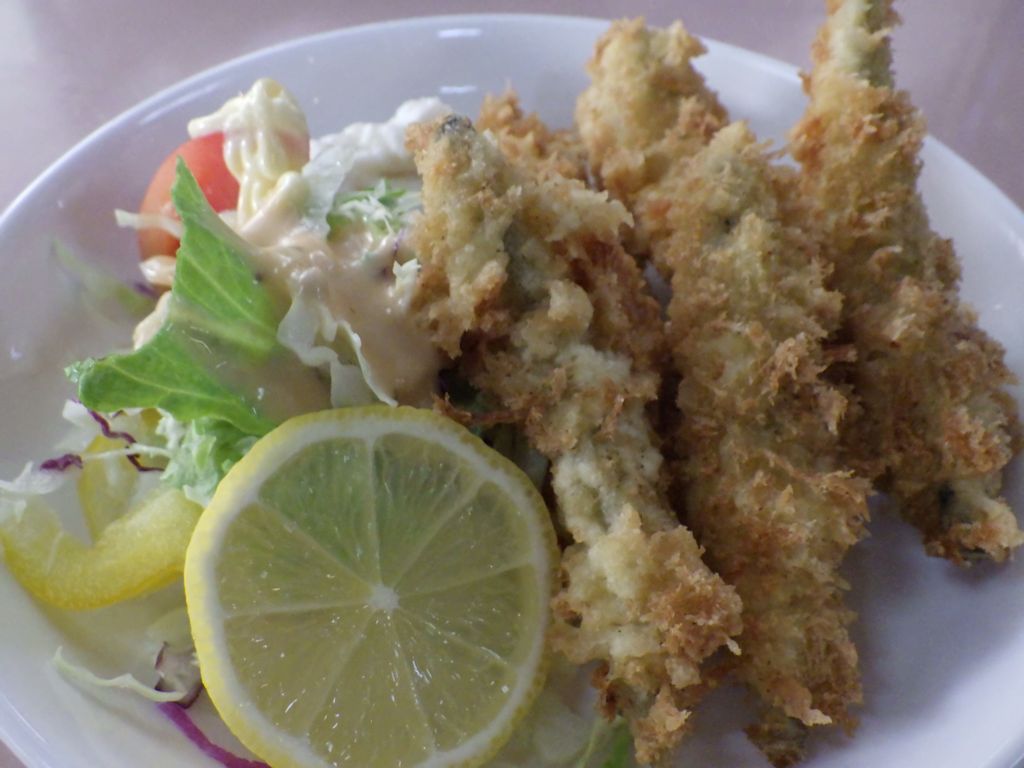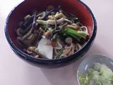昼食−若さぎフライ、トンカツ、冷し山菜そば、杉並木、清酒 (三好家)