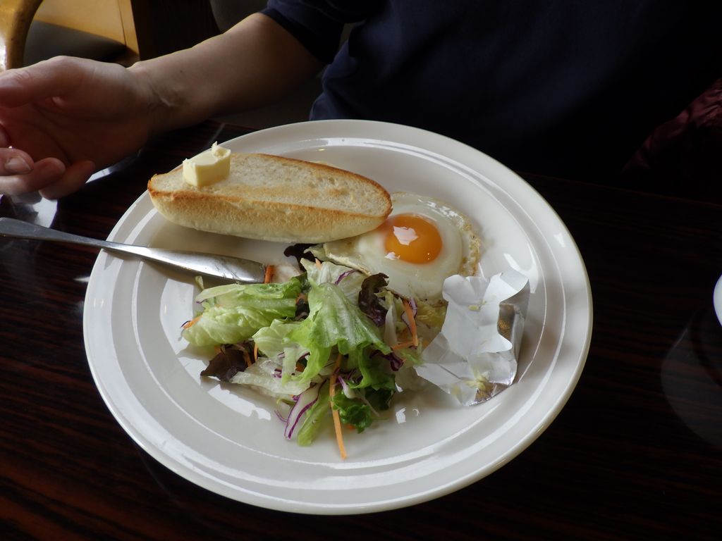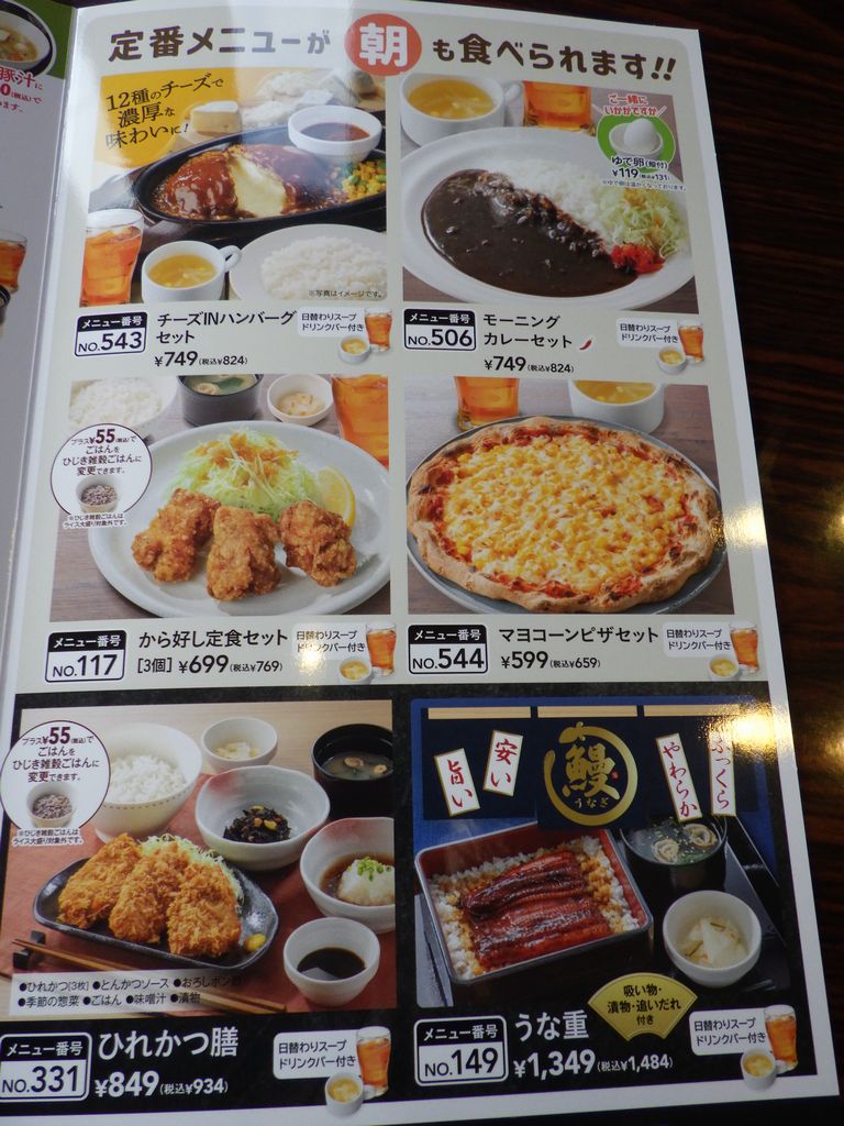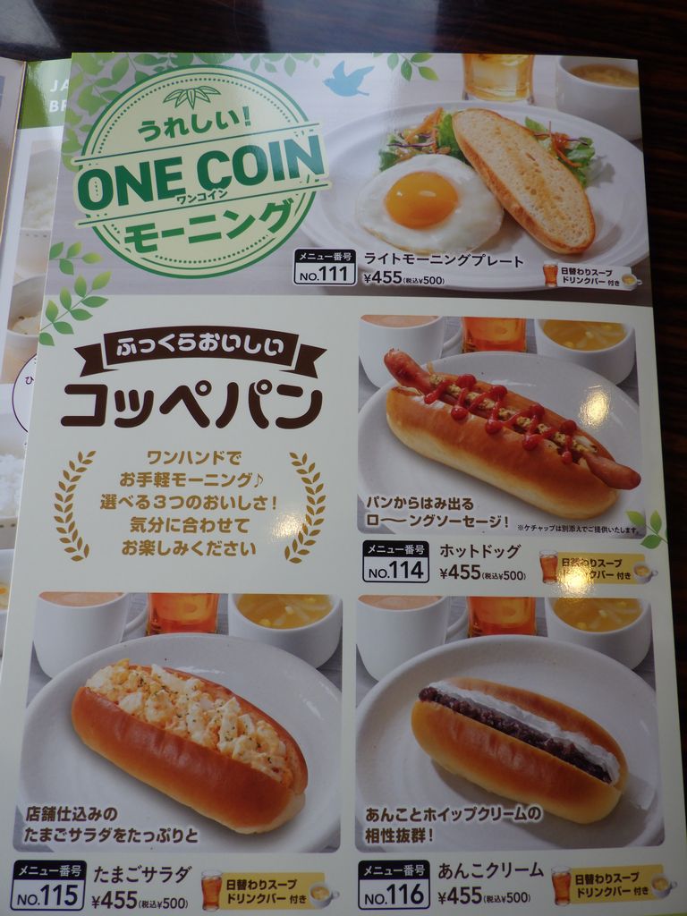 朝食−ライトモーニングプレート、マヨコーンピザセット、コッペパン (ガスト)