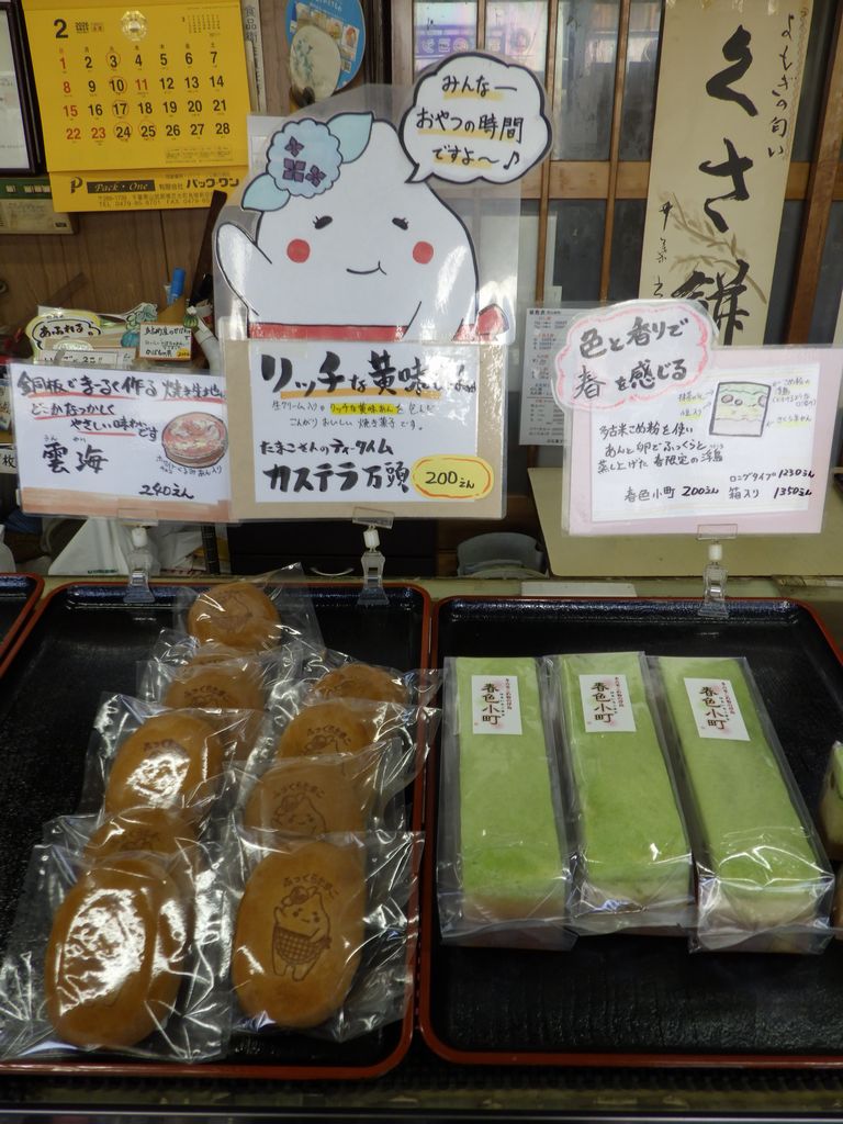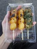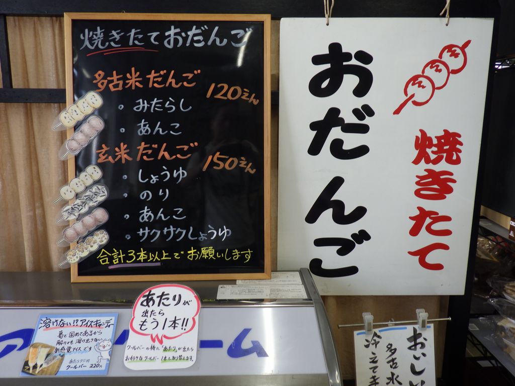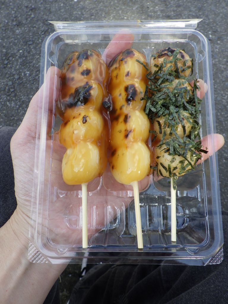 おやつ−玄米だんごのり、多古米だんごみたらし、春色小町 (白石菓子店)